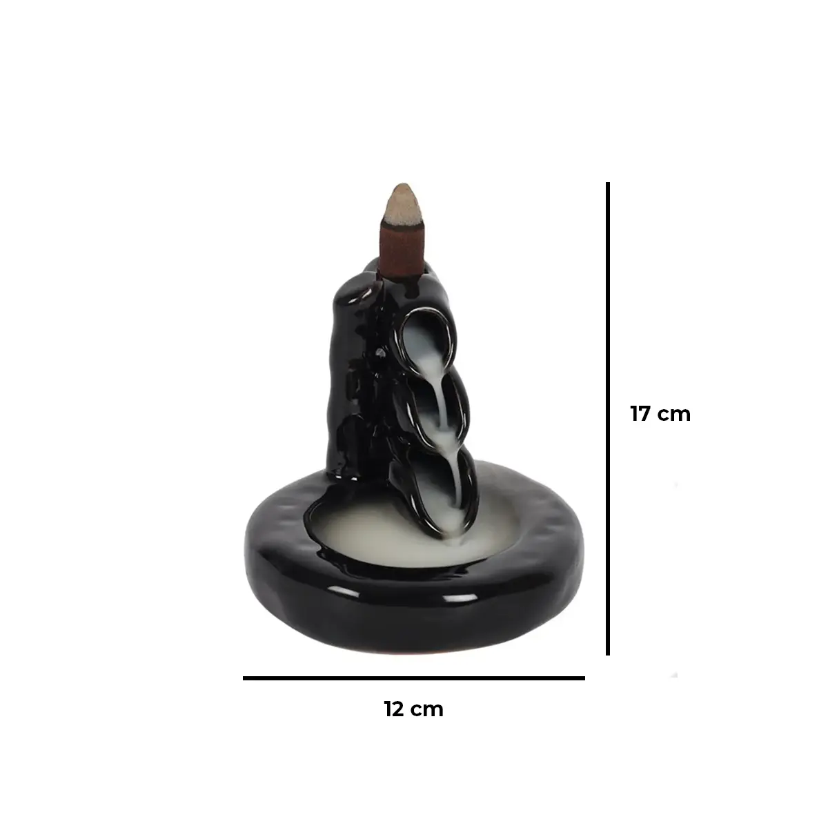 Atsargiai padėkite smilkalą į tam skirtą vietą viršuje, kad skylutė būtų tiksliai virš smilkalinės angos. Po kelių akimirkų dūmai pradės tekėti žemyn, sukurdami raminantį krioklio efektą.